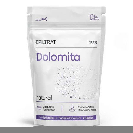 A Dolamita Epiltrat possui agente 100% natural com prioridades que desobstruiu os poros e remove a oleosidade e a sudorese. Pode ser usada como máscara facial e corporal, auxiliando no processo de renovação celular deixando a pele com o tom mais uniforme. No couro cabeludo, excelente desintoxicante capilar. Como pré-epilatório, substitui o talco, preparando a pele para um protocolo de epilação confortavel e eficaz. No pós-epilatório, ajuda a acalmar e tonificar a pele.